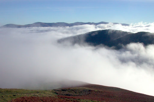 ![]() 14 November: Breaking through the cloud, looking across from Grizedale Pike to Causey Pike. |