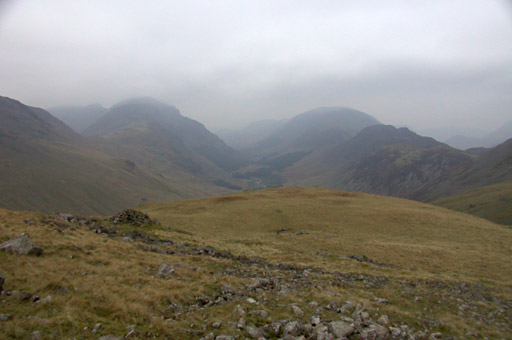 ![]() 17 November: A gloomy view down Ennerdale from the path below Brandreth, after descending from Great Gable. |