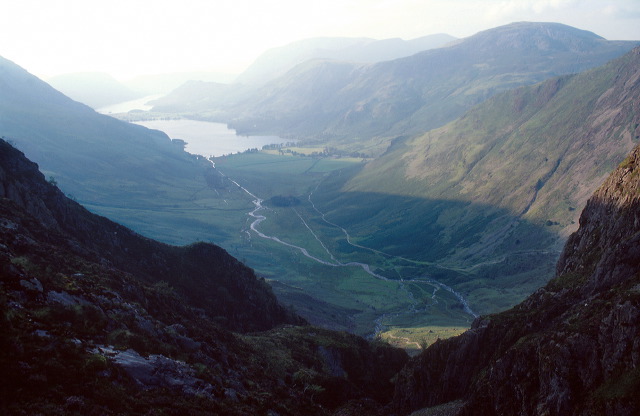 Looking NW along Buttermere from the col between Haystacks and Fleetwith Pike, in hazy summer evening sun