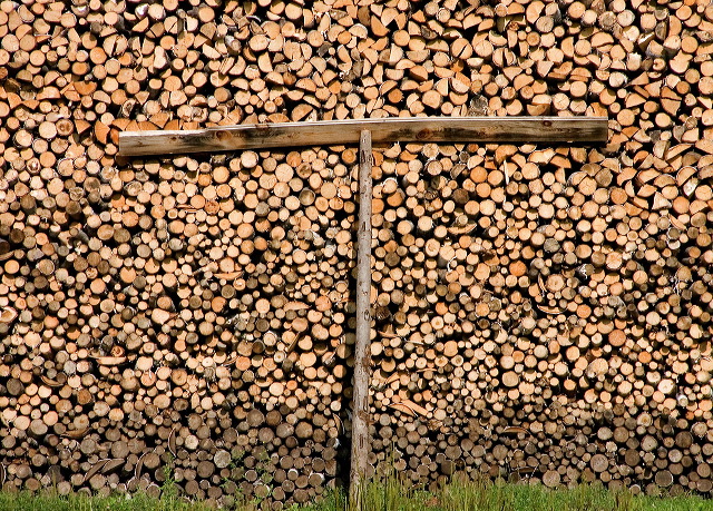 T. A view of a log store in a Polish village, ready for winter. I guess the 'T' stops them falling out, though it doesn't seem too secure! But it made a bold shape against the pattern of the logs, and I couldn't resist a quick grab shot.
