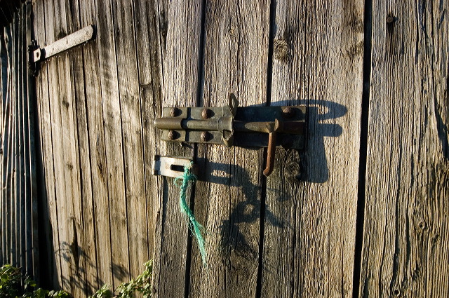 Unbolted. Rather a photographer's photo. I caught sight of the setting sun falling across these doors on an old barn, as I set out for a walk in mid November. With a 12mm lens I'm very close (look at the width of the timber on the right compared to the left) but the wide angle emphasizes the shadow of the bolt and still keeps the hinge on the left and the dark shadow under it. No, I didn't put the coloured string there – as found! 19/20 in competition.