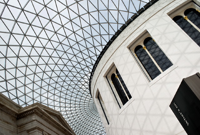 What's On. A selective view of the roof of the Great Court of the British Museum in London, designed by Foster and Partners, opened in 2000, and the largest covered public square in Europe. The title is taken from the information pillar in the bottom right corner. In competition a judge appeared to consider the photo unsatisfactory as other photographers had taken pictures in the Great Court previously. Ah well!