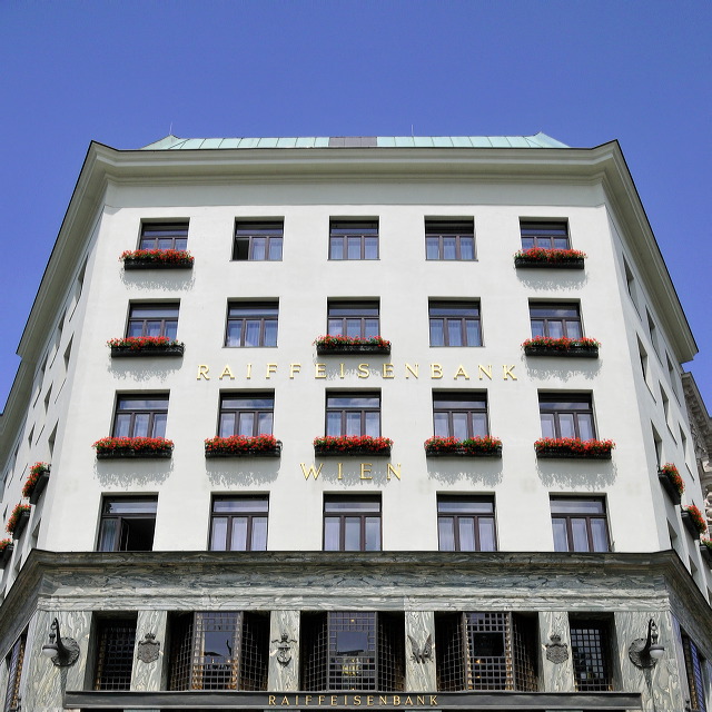 Loos Haus, Vienna. Sitting opposite the Hofburg Palace, this superb building by the notable architect Adolf Loos was controversial and much disliked by the Viennese when it was built in 1911 due to its lack of external decoration, in contrast to the very ornate buildings nearby. Loos added the window boxes to the upper stories as a compromise. In fact the lower stories – originally a gentlemen's outfitters but now occupied by the Raffeisenbank – seem quite ornate due to the use of strongly patterned Cipollino marble.